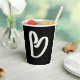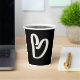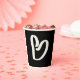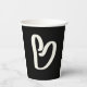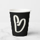 Abstraktes weißes Herz auf schwarzen Papiertassen. Spaß für jedes Party, jederzeit.