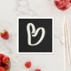 Abstraktes weißes Herz auf schwarzen Papierservietten. Spaß für jedes Party, jederzeit.