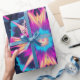Eine dynamische und dynamische abstrakte Komposition mit einer Reihe von scharfen geometrischen Formen und konvergierenden Linien. Das Kunstwerk zeichnet sich durch eine elektrische Farbpalette aus, die von Neon-Rosa, Hellblau, Gelb und Orange dominiert wird und ein futuristisches und dynamisches visuelles Erlebnis schafft. Die symmetrische Anordnung und die strahlenden Lichteffekte rufen ein Gefühl von Tiefe und Bewegung hervor, das an VJ-Visuals oder digitale Kunst erinnert.