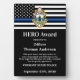 Feiern Sie einen hervorragenden Polizeibeamten mit diesem Thin Blue Line Police HERO Award - American Flag Design in Police Flag Farben , modernes schwarz blaues Design mit dem Logo der Polizei. Personalisieren Sie diese Auszeichnung mit Offiziersnamen, Text mit dem Namen der Strafverfolgungsbehörde, Logo und Gemeinde und Ausstellungsdatum. Perfekt für die Auszeichnung von Polizeirenten, Auszeichnungen von Polizeidiensten und die Anerkennung und Anerkennung der Polizei. COPYRIGHT © 2020 Judy Burrows, Black Dog Art - Alle Rechte vorbehalten. Abteilung für kundenspezifische Logos der Abteilung Polizei