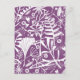 Hübsche florale botanische Silhouetten der Natur, weißes Blattwerk, Blätter und Blume auf lila Hintergrund.