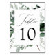 Elegante, botanische Hochzeitskarten mit der Tischnummer, die in einem rechteckigen Rahmen eingebettet ist und von Eukalyptus, Farne und anderen üppigen Grünpflanzen umgeben ist. Personalisieren Sie die Nummer für jede Tischkarte und fügen Sie sie Ihrem Warenkorb hinzu. Entworfen, um sich mit unserer Hochzeitskollektion "Abundant Greenery" abzustimmen.