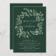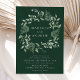 Elegante Hochzeitseinladungen mit Ihren Namen, umgeben von einem Kranz aus Eukalyptus, Farn und anderen üppigen Grünpflanzen. Ihre Hochzeitsdetails finden Sie unten auf einem dunkelgrünen Hintergrund. Die modernen botanischen Hochzeitseinladungen kehren zu einem soliden grünen Hintergrund zurück. Entworfen, um sich mit unserer Hochzeitskollektion "Abundant Greenery" abzustimmen.