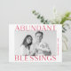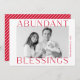 Farbenfrohe und moderne Urlaubsfotokarte mit der Phrase "Abundant Segen" in roter Schrift. Personalisieren Sie die Karte, indem Sie Foto, Namen und Jahr hinzufügen. Die Karte zeigt ein rot-weiß gestreiftes Muster an.