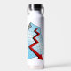 Eine Abwärtskurve mit einem großen roten Pfeil. Dieses Design sieht wirklich effektiv aus bei dieser Wasserflasche