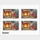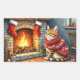 Abyssinian Cat Sitting by Fireplace with Christmas Rechteckiger Aufkleber