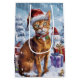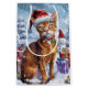 Dieses festliche Design spiegelt den fröhlichen Geist der Urlaubssaison wider und besticht durch ein hübsches Jungtier mit einer Weihnachtsmannmütze. Die Katze ist eingebettet in ein winterliches Wunderland, mit einem Schneemann, einem dekorierten Weihnachtsbaum und wunderschön verpackten Geschenken. Schneeflocken fallen sanft ab und geben der Szene eine magische Touch, während die lebhaften Farben der Feriendekorationen eine warme und fröhliche Atmosphäre schaffen.