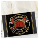 Firefighter NAME Fireman Feuer-Abteilung - Emblem mit Red Helmet und Ax. Passen Sie Ihre Name, Station/Dept-Nummer und Position an.