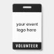 Passen Sie dieses Abzeichen mit Ihrem Logo an. Wenn Ihr Logo quadratisch ist, füllt es den weißen Raum vollständig aus. Wenn Ihr Logo nicht quadratisch ist, wird es auf einem schwarzen Hintergrund angezeigt. Die Rückseite des Abzeichens kann mit dem Ereignisnamen und Datum oder Jahr personalisiert werden, oder Sie können beide löschen, um einen schwarzen Rücken zu haben. Dieses minimalistische Abzeichen von ehrenamtlichen Mitarbeitern ist ideal für besondere Veranstaltungen, Festivals, Konzerte und Kongresse.