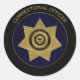 Korrektur Officer Abzeichen ROUND STICKERS-ist ein grafisches Kunstdesign. Das Abzeichen ist in Silber (oder Gold) und Schwarz mit einer kleinen Touch Blau erstellt. Ein dekorativer 7 (7) Punkte silber oder goldener Stern bildet das Abzeichen. Text, der die Spitze des Abzeichens kurbelt, lautet: ABTEILUNG DER KORREKTUREN. Text, der den unteren liest: KORREKTIONSBÜRO. Diese Worte sitzen auf einem massiven blauen Ring. Mehr Silber/Gold schmückt das Abzeichen durchweg. In der Mitte steht ein Adleremblem mit Silber-/Goldstern. Kleinerer Text in der Mitte lautet: Siegel des Staat. Das Abzeichen ist NICHT Staat spezifisch. Ein schwarzer Außenrand mit silber/goldfarbenem Text, der um den oberen Rand schwebt und lautet: KORREKTIONALER OFFICER. Dieses Abzeichen ist in Silber oder Gold mit schwarzem oder blauem Hintergrund erhältlich. Dieser Hintergrund ist massiv blau mit goldenem Abzeichen, dekorativem Goldtext und goldenen Felgen.