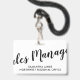Ein einfaches, modernes Abzeichen mit dem Namen und dem Firmennamen bzw. der Region. Einfach, modern und stilvoll. Für Führungskräfte für Sitzungen, Veranstaltungen und Konventionen.