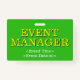 Dieses elegante Abzeichen-Design enthält die Meldung "EVENT MANAGER". Ein solches Abzeichen könnte vielleicht dazu benutzt werden, zu identifizieren, dass der Träger bei einer Veranstaltung offiziell ist. [~Z0000307]