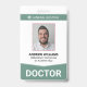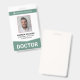 Ein modernes Abzeichen für Krankenhäuser, Kliniken und medizinische Einrichtungen. Die Vorlage für das Abzeichen des medizinischen Personals beinhaltet ein ID-Foto Ihres Mitarbeiters, den Namen und die Berufstätigkeit der Mitarbeiter sowie eine Abzeichen-ID. Das Set mit dem Gruppennamen "Arzt" wird am unteren Rand sichtbar angezeigt, wobei ein Pfeil wie das Design darauf hinweist. Die Rückseite des Abzeichen wird bewusst leer verlassen und steht Ihnen zur Verfügung, um weitere Informationen über den Angestellten und Ihr Krankenhaus oder Ihre Klinik hinzuzufügen. Farbe: grün