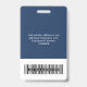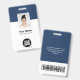 Dieses Abzeichen für den benutzerdefinierten Mitarbeiternamen kann einfach mit Foto, Scan-Bar und Firmenlogo personalisiert werden. Ein einfaches Business-Design in marineblau-weißer Farbe, das in Vorder- und Rückengrößen vollständig anpassbar ist, serifenlose, einfache und moderne Schriftart und ein berufliches und klares Aussehen. Erhältlich mit Lanyard, Metallklammer oder mit Retraktikett. Keine Mindestbestellung.