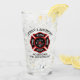 Logo der Feuerwehr. Großes Glas für Feuerwehrleute und Erste-Hilfe-Helfer. Personalisieren Sie Ihre Daten mit Ihrem Namen und Ihrer Station.