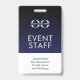 Spezielle Event Mitarbeiter ID Abzeichen, die ein Logo-Template enthalten, das Sie durch Ihr Unternehmen oder Event-Logo oder Grafik ersetzen können. Entworfen für Corporate, Party, Konzerte oder Kongressmitarbeiter und Sicherheit.
