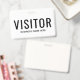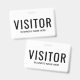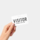 Corporate Business Visitor Abzeichen. Modernes Schwarz-Weiß-Design mit leicht lesbarem Schriftart. Personalisieren Sie diese Vorlage für das Abzeichen des Besuchers, ändern Sie Text und Farben in diesem Design.