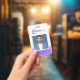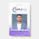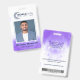 Stilvolles Mitarbeiter-ID-Abzeichen mit lila geometrischem Design, Foto-Platzierung, Strichcode und Firmenlogo. Personalisieren Sie Ihre Daten mit Mitarbeitername, Jobtitel und Kontaktinformationen. Ideal für Büros, Start-ups, Remote-Teams und berufliche Arbeitsumgebungen. Sauber, modern und einfach zu anpassen.
