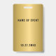 Passen Sie dieses Imitat Gold metallische Freiwillige Veranstaltung Crew Mitarbeiter Abzeichen mit Ihrem Logo. Wenn Ihr Logo quadratisch ist, füllt es den weißen Raum vollständig aus. Wenn Ihr Logo nicht quadratisch ist, wird es auf einem goldenen Hintergrund angezeigt. Die Rückseite dieses Abzeichens kann mit dem Veranstaltungsnamen und Datum oder Jahr personalisiert werden, oder Sie können beide löschen, um eine vollständige Rückvergütung zu haben. Dieses einfache, minimalistische Crew-Abzeichen ist ideal für besondere Veranstaltungen, Feste, Konzerte und Kongresse.