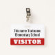 Füllen Sie den Schulnamen aus und ändern Sie die Hintergrundfarbe, um ein individuelles Abzeichen für die Besucher zu erstellen.