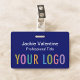 Personalisieren Sie unser berufliches PVC-Namensschild mit Ihrem Firmenlogo, Mitarbeiternamen, Jobtitel oder anderen benutzerdefinierten Texten. Erhältlich mit einem Lanyard, einer Metallklammer oder einer einziehbaren Rolle. Design in Blau und anderen Farben mit einem modernen minimalistischen Design von MISOOK. Alle Farben sind anpassbar. Die Abmessungen sind 3,38 Zoll x 2,13 Zoll. Keine Mindestbestellmenge und keine Einrichtungsgebühr. Alle Bestellungen werden von Zazzle auf Zazzle-Produkten ausgeführt. MISOOK hat KEINE persönlichen Daten, Lieferdaten oder Kreditkarteninformationen, daher kontaktieren Sie Zazzle direkt für Fragen, die auch Fragen zur Anpassung Ihres Designs beinhalten.