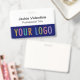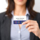 Personalisieren Sie unser berufliches PVC-Namensschild mit Ihrem Firmenlogo, Mitarbeiternamen, Jobtitel oder anderen benutzerdefinierten Texten. Erhältlich mit einem Lanyard, einer Metallklammer oder einer einziehbaren Rolle. Design in Blau und anderen Farben mit einem modernen minimalistischen Design von MISOOK. Alle Farben sind anpassbar. Die Abmessungen sind 3,38 Zoll x 2,13 Zoll. Keine Mindestbestellmenge und keine Einrichtungsgebühr.