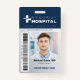 Dieses Abzeichen mit individualisierbarer Krankenhauskennung enthält Platz für Foto, Namen, Titel, Abteilung und Strichcode. Der Rücken bietet Platz für zusätzlichen Text je nach Bedarf Ihrer Einrichtung. Perfekt für Ärzte, Krankenschwestern und alle medizinischen Fachkräfte in einem klinischen oder Krankenhaus Umfeld.