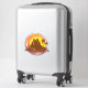 Abzeichen mit tropischer Vulkanlandschaft und Palm Aufkleber