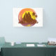 Landschaftsbild im Stil der Silhouette mit tropischen Palmen und Vulkaninseln