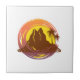 Abzeichen mit tropischer Vulkanlandschaft und Palm Fliese