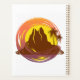 Abzeichen mit tropischer Vulkanlandschaft und Palm Planer