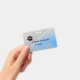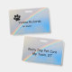 Pawprint in oben verlassen, mit Regenbogenschnitt von Ecke zu Ecke unten. Vorderseite zeigt Name und Titel, hinten (minus paw print) zeigt den Firmennamen und den Standort an.