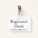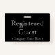 Dieses altmodische Abzeichen-Design enthält die Meldung "Registered Guest", einen benutzerdefinierbaren Firmennamen oder eine andere benutzerdefinierte Nachricht. Ein solches Abzeichen könnte vielleicht dazu benutzt werden, anzugeben, dass eine Person ein bekannter und autorisierter Gast oder Besucher eines Unternehmens oder Arbeitsplatzes ist. [~Z0000307]