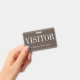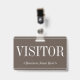 Dieses Vintage Abzeichen-Design enthält die Meldung "VISITOR", einen benutzerdefinierbaren Firmennamen oder eine andere benutzerdefinierte Nachricht. Ein solches Abzeichen könnte dazu verwendet werden, zu identifizieren, dass jemand am Arbeitsplatz oder in einem Unternehmen ein autorisierter Gast/Besucher ist. [~Z0000307]