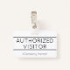 Dieses bescheidene Abzeichen-Design enthält die Meldung "AUTHORIZED VISITOR", einen benutzerdefinierbaren Firmennamen oder eine andere benutzerdefinierte Nachricht. Ein solches Abzeichen könnte vielleicht dazu verwendet werden, darauf hinzuweisen, dass eine Person ein bekannter und autorisierter Gast oder Besucher eines Unternehmens oder Arbeitsplatzes ist. [~Z0000307]