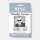 Personalisieren Sie das Ring Security Agent Abzeichen mit Dankeschön Notiz und Foto Bereich für Ihren Ringträger. Benutzerdefinierte Farben