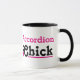 Diese weiße Tasse mit einem stilvollen schwarzen Griff und Interieur zeichnet sich durch den Begriff "Accordion Chick" in einem lustigen, kühlen Schriftart mit magentafarbenen Akzenten aus. Es ist für Akkordeon-Liebhaber gedacht, die gewollt haben, ihren Tag auf hohem Niveau zu beginnen oder eine gemütliche Getränkepause zu genießen. Die Tasse ist ein großartiges Geschenk für Musiker, Musiklehrer oder alle, die den einzigartigen Klang des Akkordeons Liebe haben.