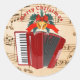 Accordion Musik, beliebtes Weihnachtsdesign, rote Akkordeon auf Notenblatt. Frohe Weihnachten!