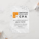 Celebrate a remarkable milestone with this modern and professional CPA graduation invitation. Designed with a clean white layout, subtle geometric textures, and bold orange accents inspired by accounting symbols, this invitation perfectly reflects the achievement of becoming a Certified Public Accountant.