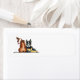 Tinte und Bleistift-Zeichentrickbild eines australischen Rinderhundes mit einem braunen und weißen Kalb. Kunst von Andie.