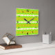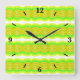 Acht farbige, grün und gelb gezeichnete Flachmuste Quadratische Wanduhr