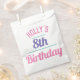 Papiertüten für eine 8. Geburtstagsfeier. Entworfen für ein Kind, das einen Geburtstag hat. Geburtstagsfeier Party Tasche mit dem Alter. Geburtstagsfeier. Geben Sie den Namen und das Alter der Person an, deren Geburtstag es ist. Bonbonbeutel. Sweeties Tasche.