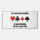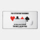 Zeigen Sie Ihre wry doppelte Bridge-Einstellung mit dieser Schreibtischmatte mit den vier Karten-Anzügen zusammen mit dem folgenden Sound-Hinweis: "Achten Sie darauf, dass das Gebot bestimmt die beste Spiellinie". Eine unvergessliche Bridge-Tipp für jeden Bridge-Spieler, der gerne gewinnt!