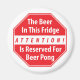 Achtung! Das Bier in diesem Kühlschrank ist für Bierpong reserviert. Man will keine ungewollten Schuppen, die das Bier verschwenden, und lässt sie mit diesem Bierpong-Magneten an der Pässe aussteigen. Sicher, lacht, wenn deine Freunde kommen, um zu spielen.