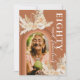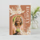 Rustikale böhmische 80. Geburtstagsfeier mit einem verbrannten orangefarbenen Hintergrund mit Regenbogenbogenarmatur, einem Foto des Geburtstagsmädchens, wasserfarbenen Blätter aus der Wüste, Pampas Gras, Blumenblättern und einer eleganten achtzigsten Weihnachtsvorlage auf der Rückseite, die leicht zu personalisieren ist.