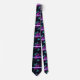 Behalten Sie den Achtzigerjahre lebendigen Text auf einer schwarzen Krawatte. Schließt weißen abstrakten Entwurf und Neonfarben ein.