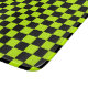 A vibrant checkerboard pattern with alternating neon yellow and black squares creates a striking geometric design, conveying a bold and energetic tone.