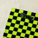 A vibrant checkerboard pattern with alternating neon yellow and black squares creates a striking geometric design, conveying a bold and energetic tone.
