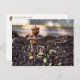Acorn Elfengärtner arbeitet an der Postkarte für den Garten - lustige Postüberquerung der Postkarte