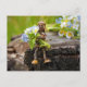 Acorn elf Mädchen auf Birne mit Blume - lustige Frühjahrs- oder Sommerpostkreuzung Postkarte